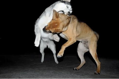 除了咬耳朵,狗狗还会用“踢腿”的招式。视频中,一只狗狗突然踢向另一只狗狗的肚子,另一只狗狗则立刻反击。它们你踢我挡,场面十分激烈。